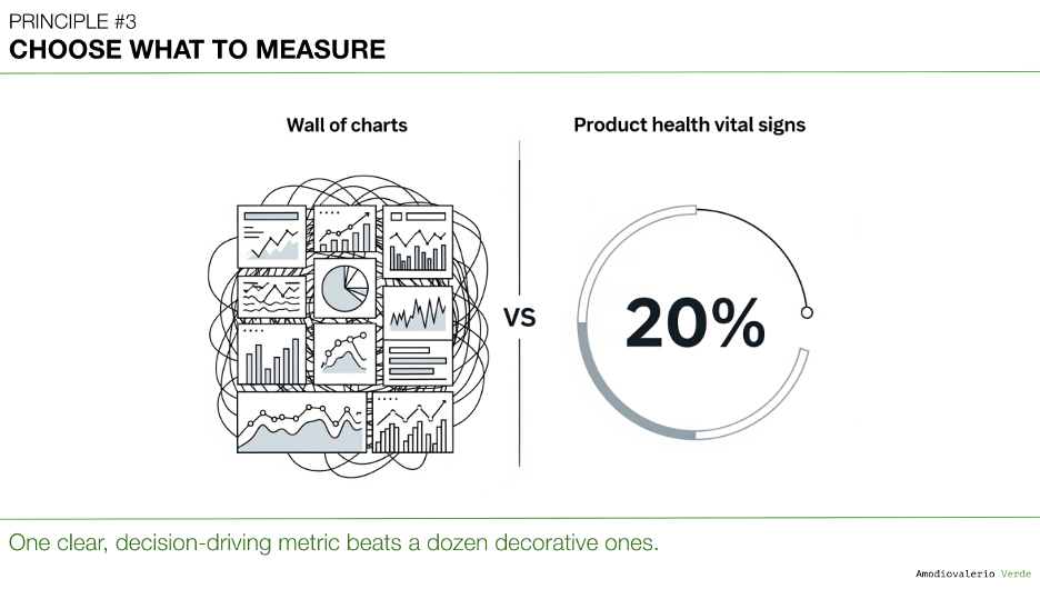 Think like a doctor, not a data collector. Your dashboards should be a cockpit, not a buffet. Every metric has a cost in attention, fueling debate and cognitive load. Track only what informs decisions. If a number doesn't drive action, it's just noise.