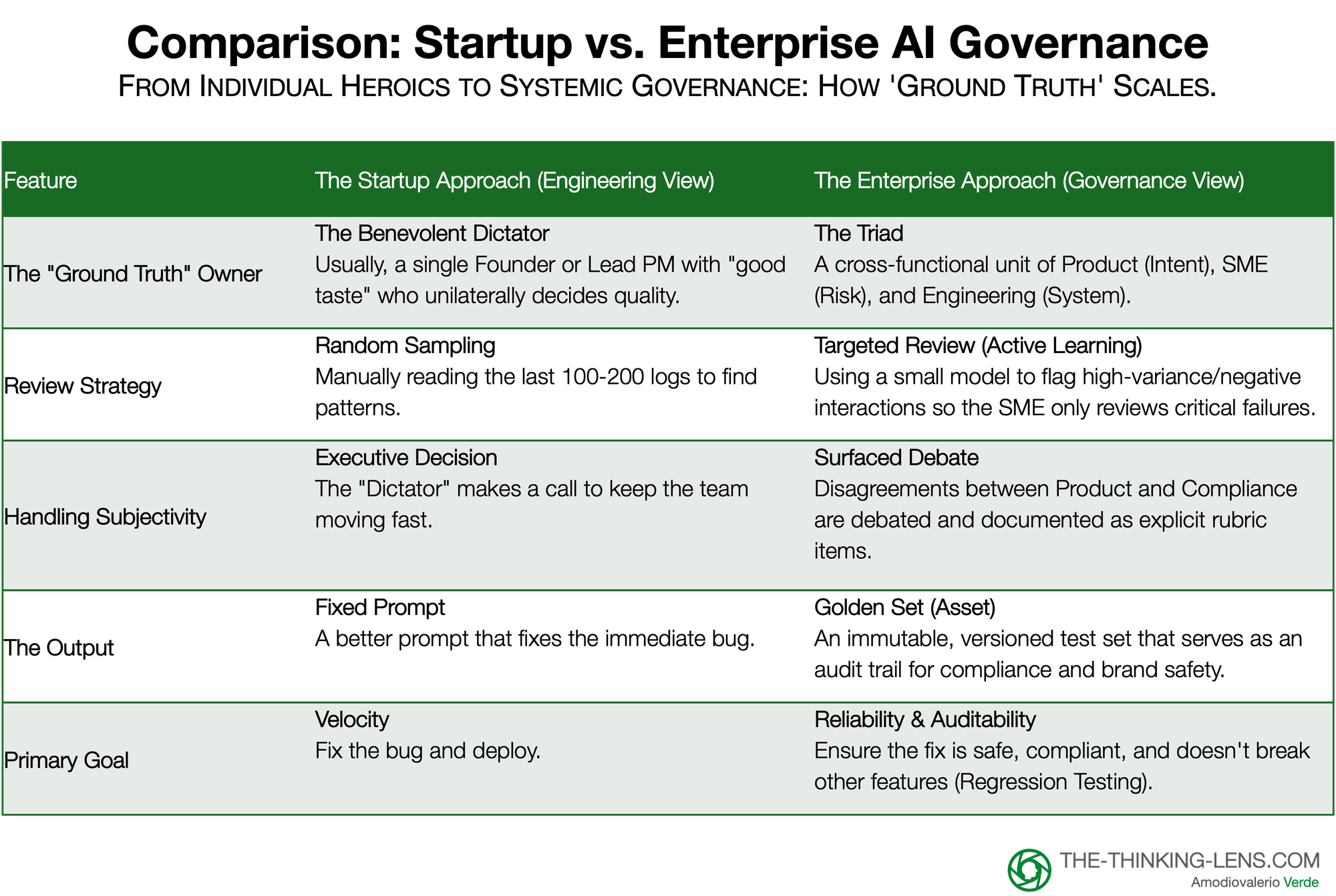 For very small teams, you can absolutely start with a lightweight version of this (one person wearing multiple hats). The full, formal Triad and heavier process are for scale-ups and enterprises; I outline how to dial the rigor up and down by stage and risk tier in Part 3 (“Scaling Rigor: Governance is a Dial, Not a Switch”).