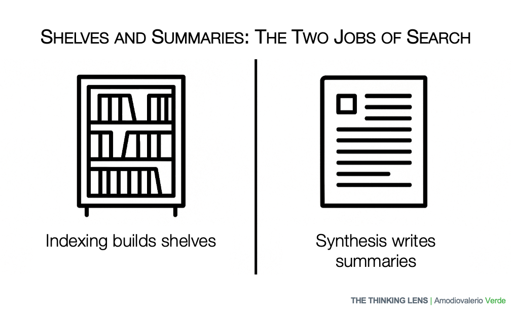 When a company owns both the index (the shelves) and the synthesizer (the summaries), it doesn’t risk being displaced. It risks becoming a gatekeeper.