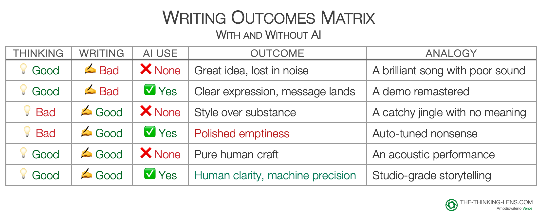 - Good thinking, good execution with AI → leverage – strategy meets craft.